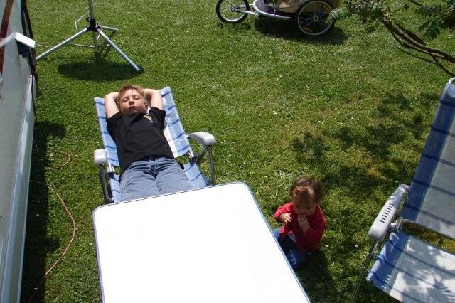 Endlich ist es soweit, wir sind mit dem Womo in Königsee. Und weil dieses Wochenende die Biker kommen, hat mein Papi auch sein Mopped mit. Das war vielleicht eine Fuhre - das Womo mit dem Anhänger ist fast solang wie ein richtiger Laster. Und mein Papi hat das voll im Griff.