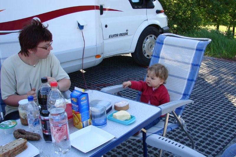 So, meine Hanni ist jetzt schon fast einen Monat lang ein Jahr alt, und es ist schon richtiger Sommer. Papi hat mal wieder eine Idee, und so fahren wir am Freitag mit dem Womo los. Da die Dieselpreise jetzt so hoch sind, haben die Eltis beschlossen, daß wir nur noch kurze Strecken am Wochenende fahren. Und so fahren wir halt in die Rhön.